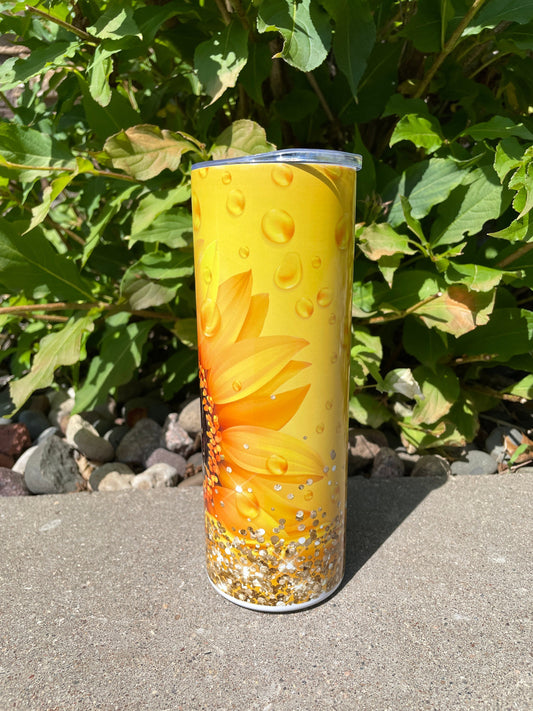 20 oz metal tumbler - Sunflower Design