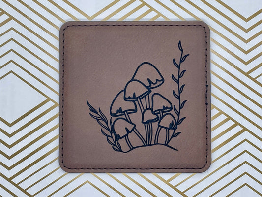 Engraved Mushroom Leather Coasters – Set of Four